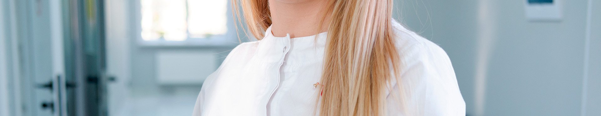 женщина врач в коридоре клиники